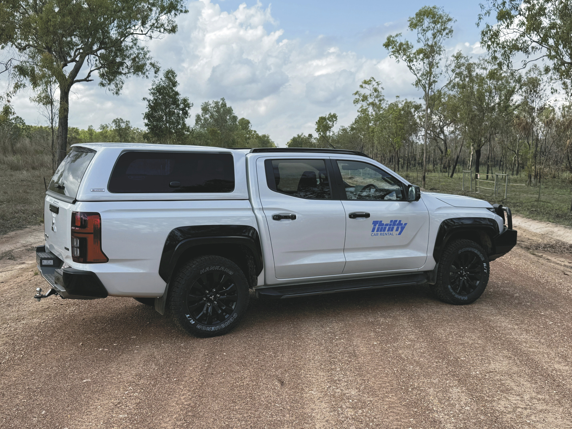 Mitsubishi Triton GSR o.ä. (Double Cab 4WD):Double Cab Pick-up mit Canopy (Hardtop-Ladeflächenabdeckung), 4-türig, Diesel, 75 l Tank, Automatik mit Untersetzung, Allradantrieb zuschaltbar, All Terrain-Bereifung, 2 Ersatzräder, Klimaanlage, Rückfahrkamera, Radio, Android Auto/Apple Car Play.