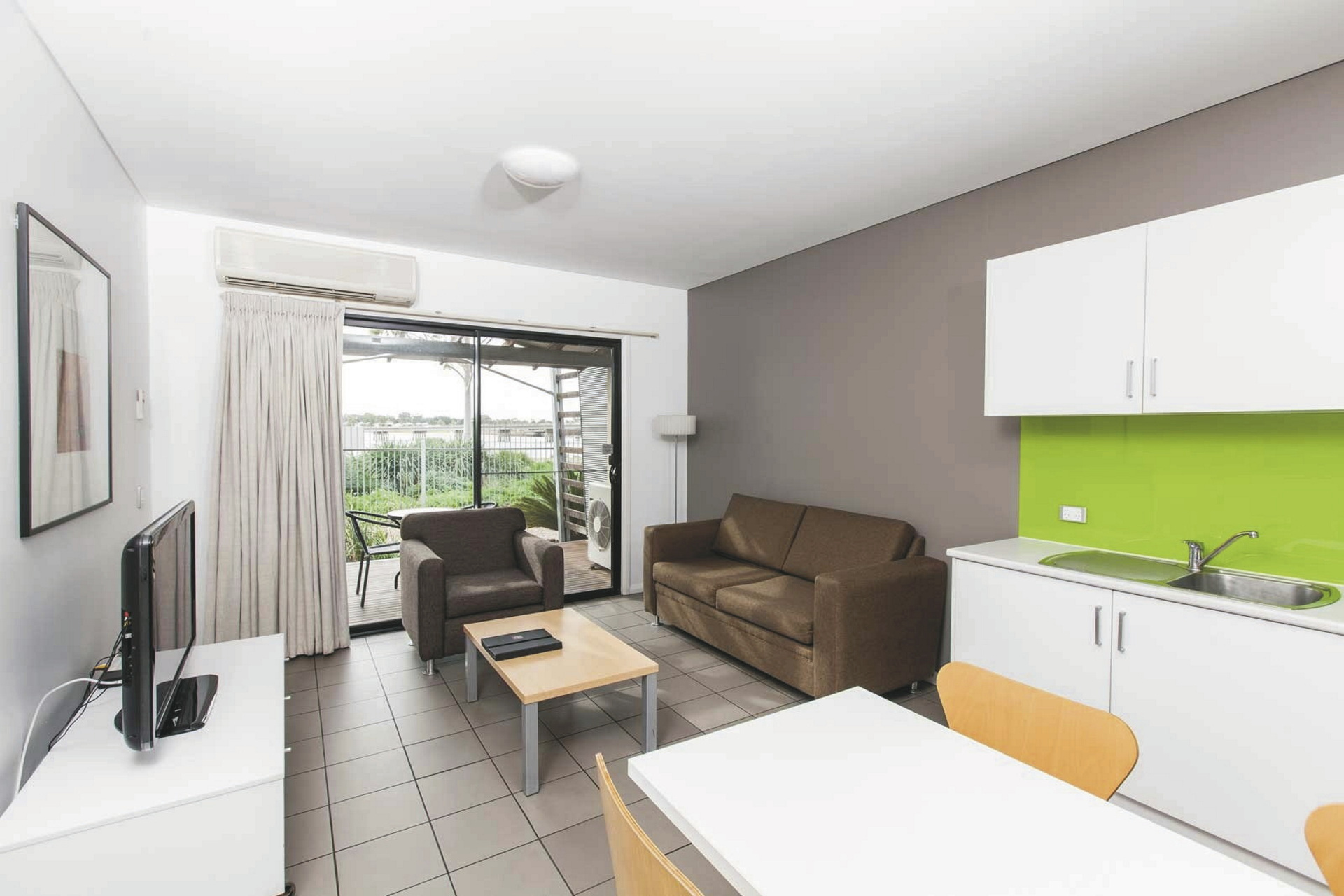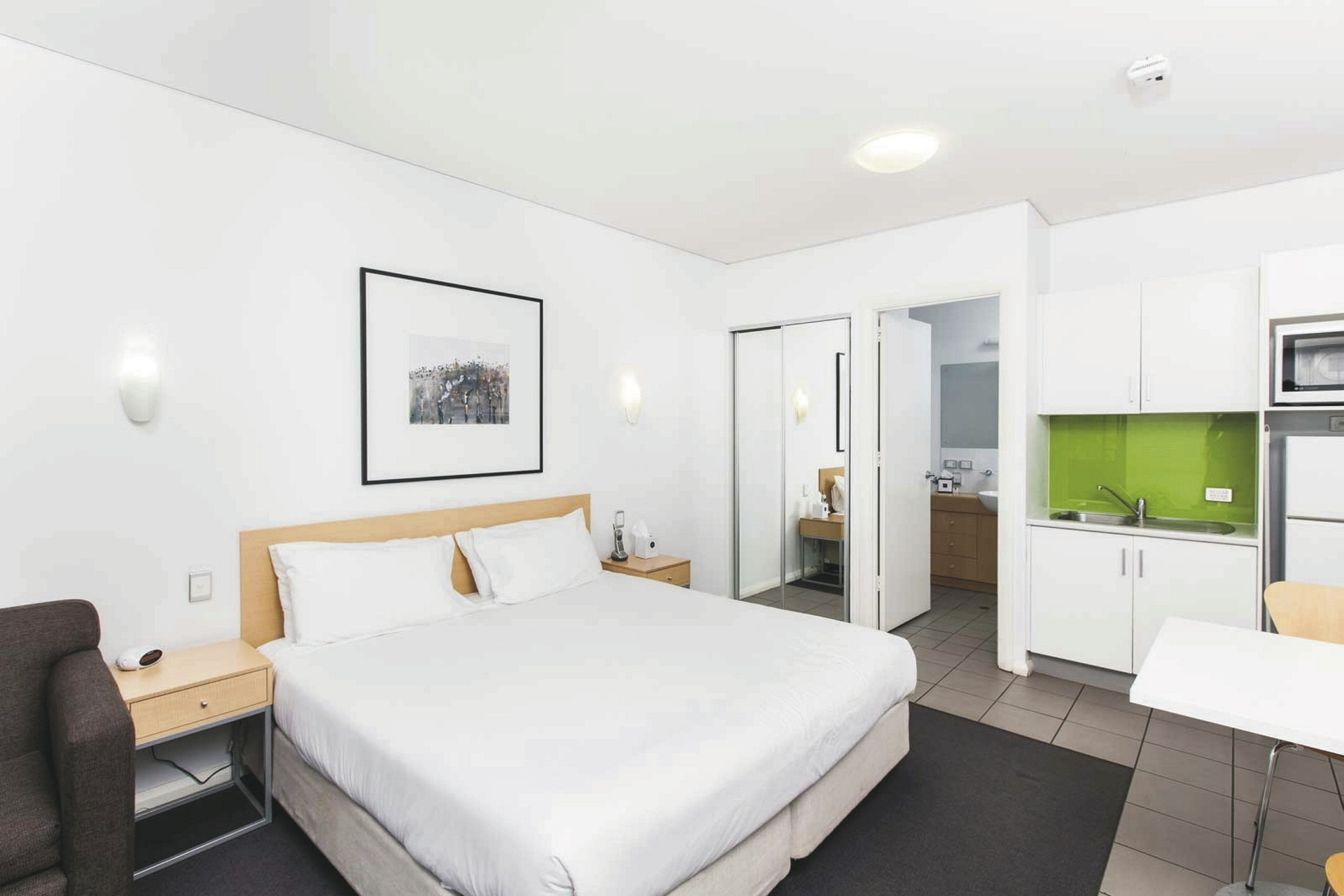 75 moderne Studios und Apartments, alle mit Bad/WC, Klimaanlage, TV, DVD-Spieler, Telefon, Zimmersafe, kompletter Küche und Waschmaschine/Trockner. Superior Apartments zusätzlich mit Balkon.
