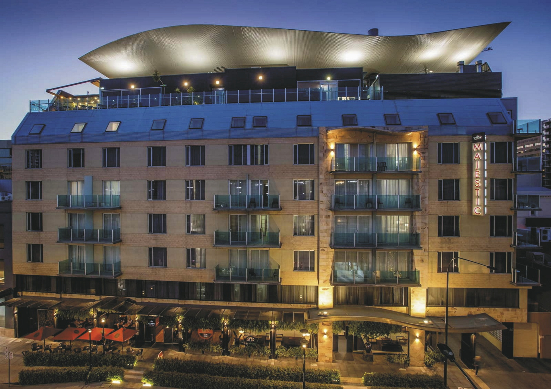Das Majestic Roof Garden Hotel ist das Flaggschiff einer kleinen südaustralischen Hotelgruppe. Es bietet u.a. das ausgezeichnete Culshaws Restaurant, 24-Stunden-Rezeption und Zimmerservice, Fitnessraum, Park- und Reinigungs-Service und Münzwaschsalon sowie - einmalig in Adelaide - einen Dachgarten mit Aussicht auf die Stadt. WLAN ist im gesamten Hotel kostenfrei.